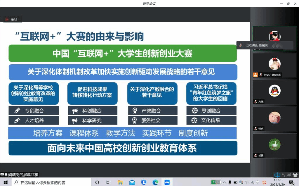 魏老师从“三大赛”基本情况开启,向大家介绍了什么是创新创业的 “三大赛”、分别在什么时候举行、有哪些政策支持等信息,使营员们建立关于三大赛的初步认知。随后,魏老师分别从如何选择有价值的课题、怎样利用优势和特色对项目进行提升、怎样包装项目等方面为营员带来细致的讲解。