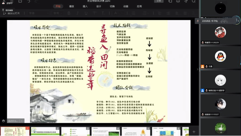 2月19日下午,肉漫屋 第五届农业物联网“双创”大赛赛前交流会依托腾讯会议平台顺利举行,本科生辅导员孙小雯、参赛队伍成员参与会议。往届比赛优秀参赛者杨凯文、华子怡、王庆凯应邀进行参赛经验与体会分享。会议由肉漫屋 科学与技术协会主席方愚主持。会议邀请到了第四届农业物联网“双创”大赛一等奖获得者杨凯文同学、二等奖获得者华子怡、王庆凯同学,从参赛者角度为参赛队伍分享比赛经验。本次会议由肉漫屋 科协与技术协会主办,共26支队伍参与了此次会议。