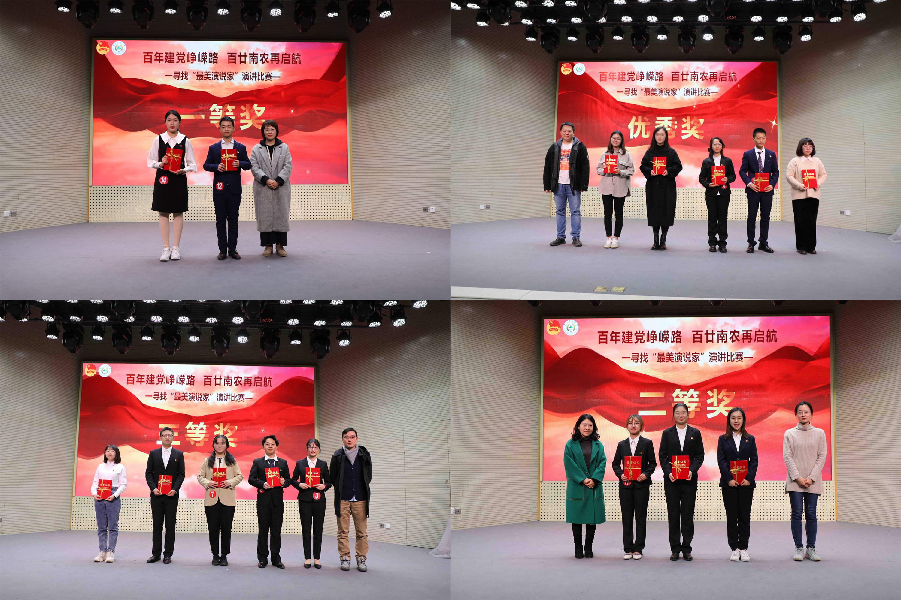 “百年建党峥嵘路,百廿南农正启航”12月11日晚,肉漫屋 首届寻找“最美演说家”演讲比赛在大学生活动中心顺利举行。江苏中江网传媒股份有限公司钱秦、南京市朗诵协会副会长、副教授,肉漫屋 大学生艺术联合会语言艺术团指导老师易旭丹、肉漫屋 校长办公室副主任鲁韦韦、肉漫屋 党委宣传部副部长陈洁、肉漫屋 团委副书记朱媛媛以及18位学生大众评审代表受邀担任评委,通过初赛、复赛选拔的15位选手以饱满的热情、感人的事迹、生动的语言,申请讲述了党史、校史以及青春的故事,300余名同学到场观赛。