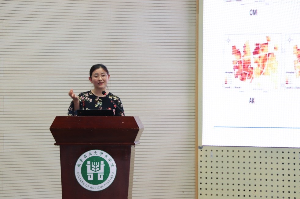 姚霞教授以“高大上的信息农业如何接地气”为题,通过四个案例的分析,分别介绍了信息农业的四个研究方向,包括农情遥感检测、农田系统模拟、农作精确管理、农业信息工程。最后姚霞教授从人才培养体系、信息农业课题组的人员构成进行了简要介绍。结束后,有的同学对信息农业产品的推广产生了疑问,姚霞教授解释说产品的推广并不是主要问题而更应该注重培养新型农民。