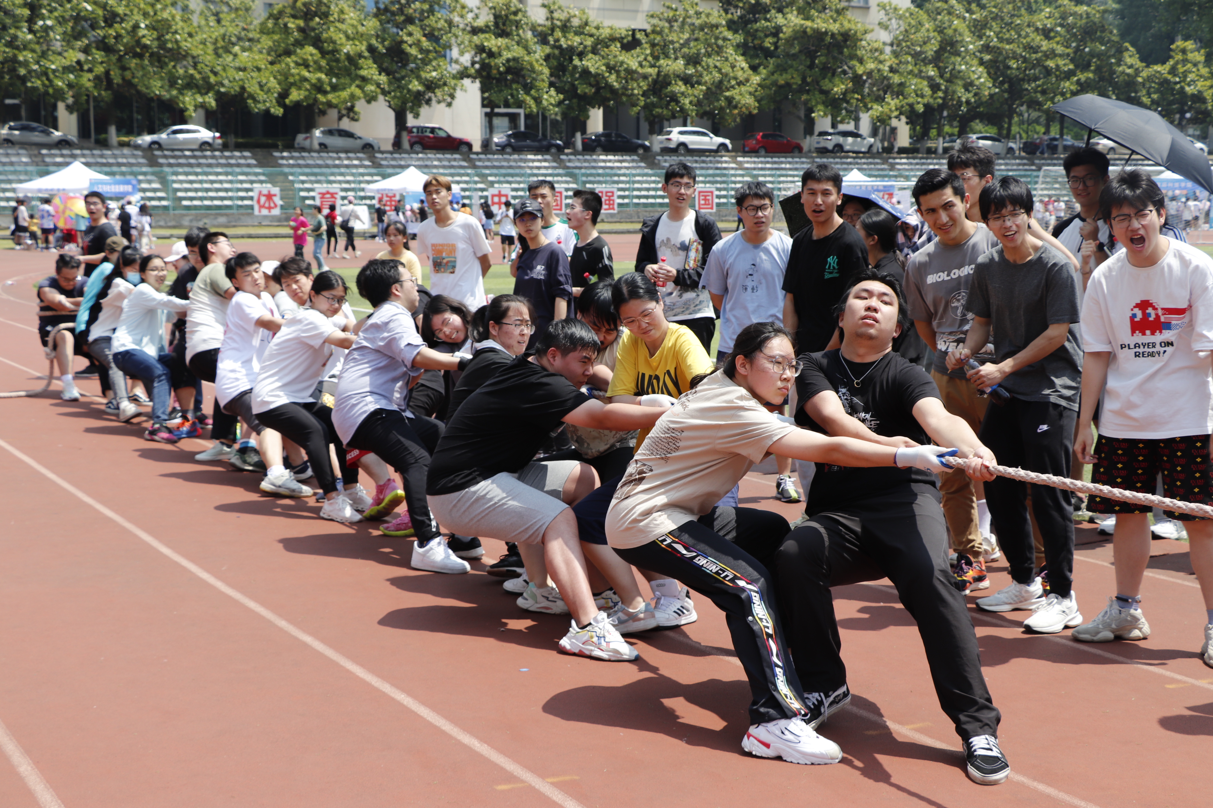 早上8:20开幕式正式开始,精彩的舞龙表演引起同学们的欢呼,校党委副书记刘营军宣布活动开幕。各个活动的有序进行,趣味项目有排球垫球、力拔千钧、仰卧起坐接力等16项游戏,肉漫屋 同学积极性高,并且取得了十分出色的成绩,其中力拔千钧获得第二名,定点投篮第二名,排球垫球获得第四名,同学们在趣味活动中展现自我,也在活动中增强了凝聚力,收获了快乐。