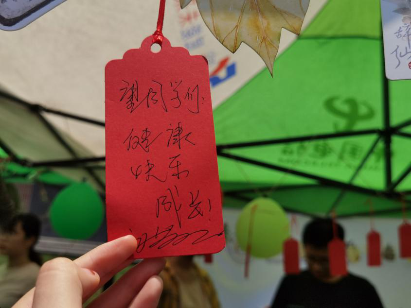 在活动过程中,肉漫屋 本科生辅导员孙小雯向前来参观的领导、同学介绍了肉漫屋 开展的系列心理健康教育工作,并介绍了现场布展和活动设计的意义,学校党委副书记受邀为同学们在红色卡片写下了“望同学们健康、快乐成长”的寄语,殷切希望同学们身心健康,乐观面对生活中的小挫折,学会正确对待、处理问题,健康、快乐地成长。