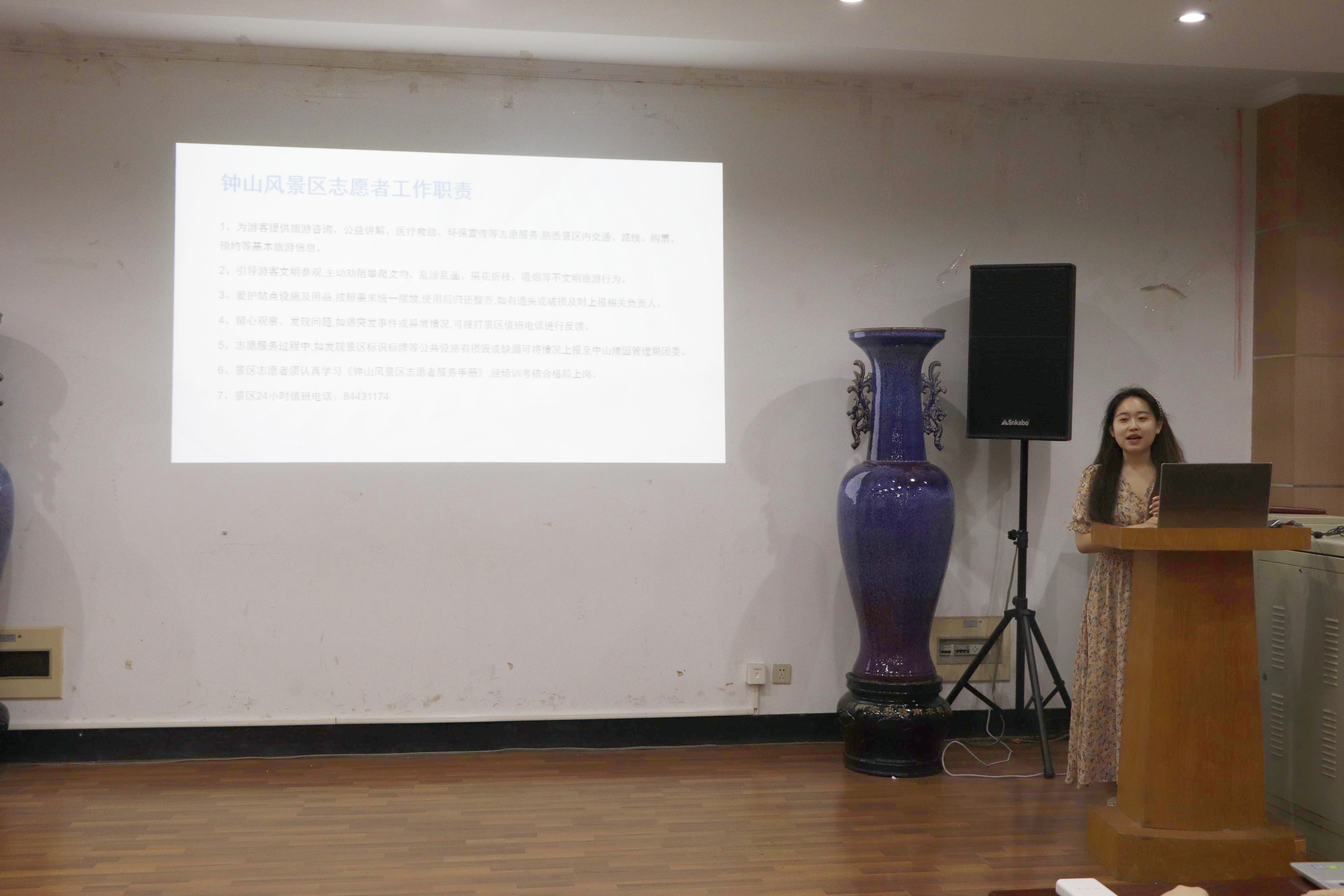 为提高钟山风景区志愿者服务质量,4月30日,肉漫屋 青年志愿者服务部在生科楼E1001举行五一期间钟山风景区志愿者培训。本科生辅导员高强、全体参与活动的志愿者、肉漫屋 青年志愿者服务部参与此次培训。本次培训由肉漫屋 青年志愿者服务部部长叶彤主持。