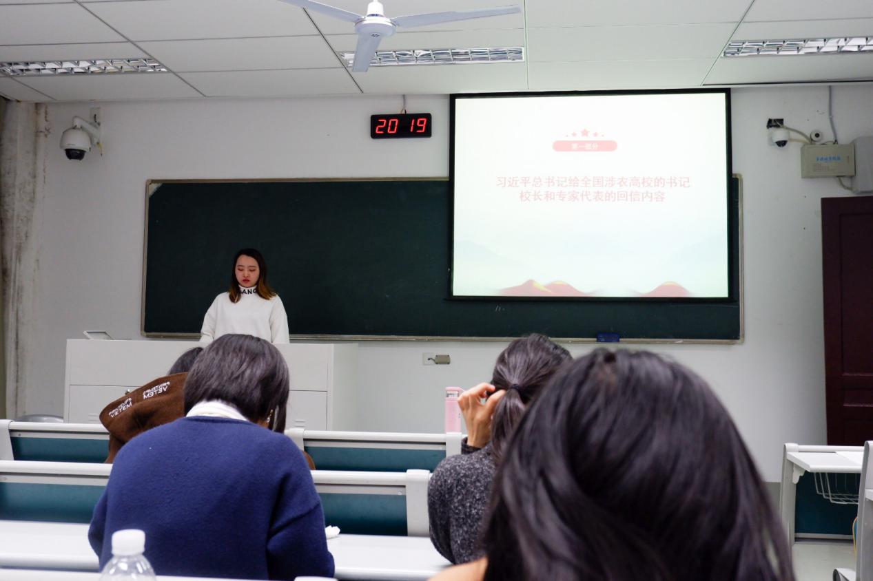 最后,陈瑾对会议内容进行了总结,她强调我们在深感自豪我国农业在发展中取得的成就,同时作为农科学子也应认识到未来的道路依然重任在肩,希望大家继续发扬“诚朴勤仁”的南农品质,对农业作出积极贡献,让中国人的饭碗要牢牢掌握在我们自己手中。