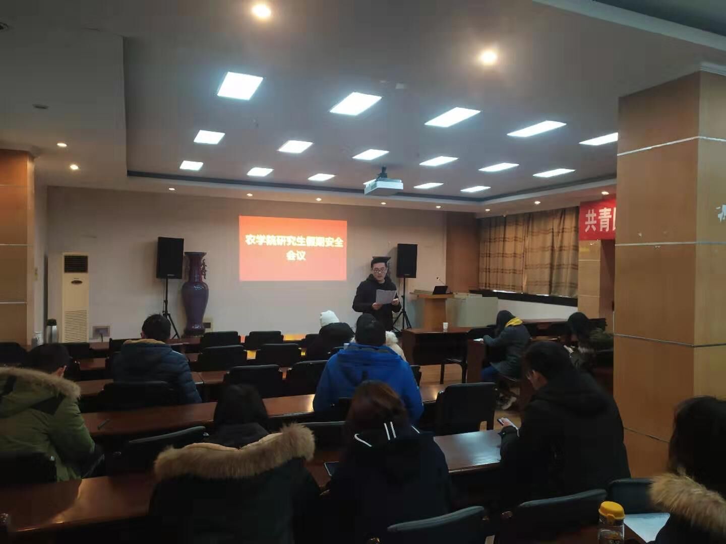 2019年1月14日上午,学院召开研究生寒假安全稳定工作会议,课题组负责人、主要学生骨干参加会议。研究生辅导员吕美泽就研究生寒假安全及注意事项进行了说明,传达了学校对安全工作的部署和要求,并从宿舍安全、交通安全、实验安全、旅行安全、饮食安全等多方面讲述注意事项,要求研究生提高思想认识,加强宿舍、实验室安全排查,防范各类安全隐患发生。