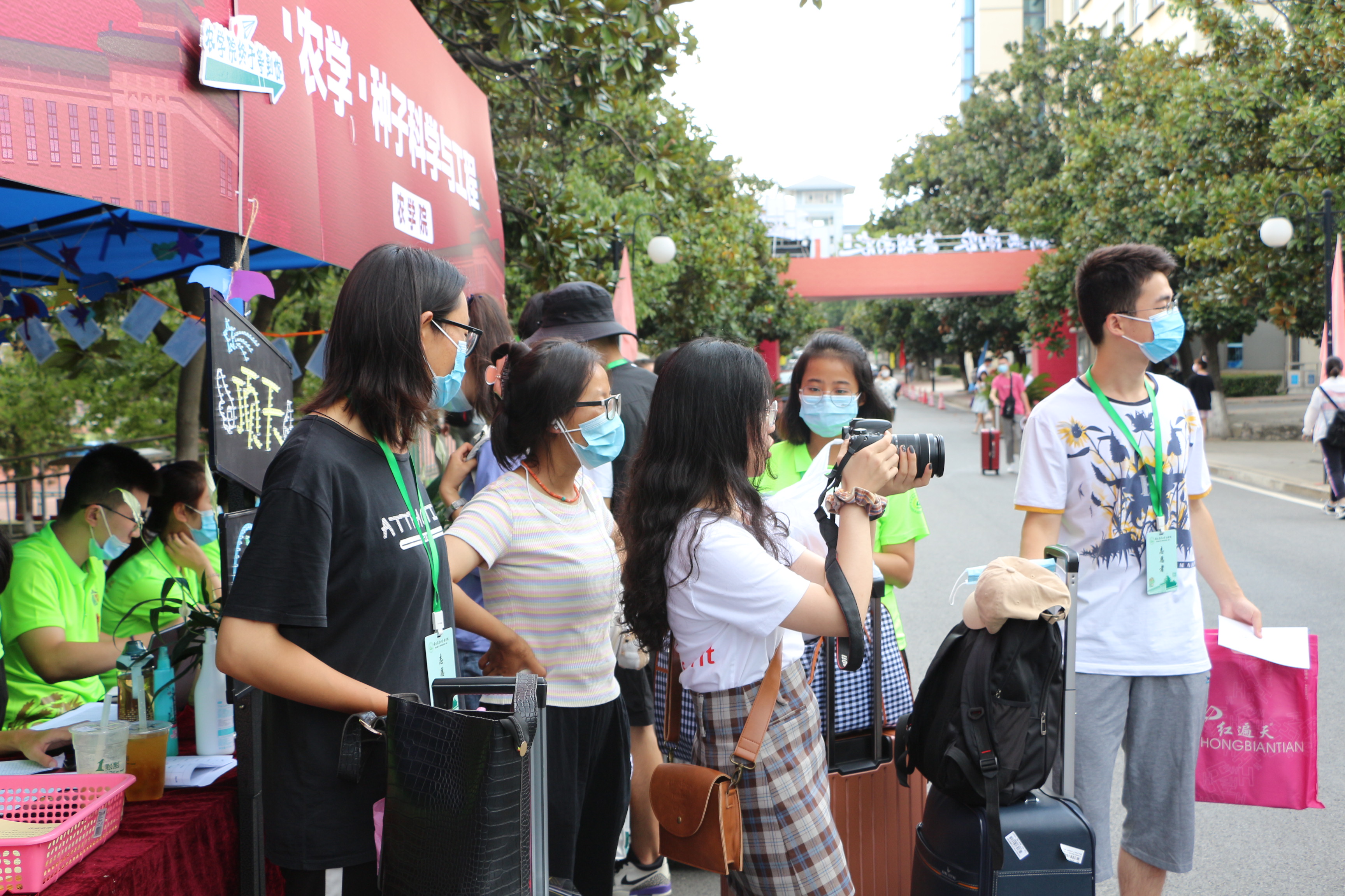 接着,志愿者们带领各自负责的新生前往宿舍办理入住手续。在前往宿舍的路上志愿者为新生介绍了校园的各个地方:食堂、操场、教学楼、图书馆……他们的耐心讲解帮助新生更好地熟悉了校园生活。被分配到行李房的同学,不言辛苦地为新生检查并分发着床上用品……校园的每一个角落都洋溢着热闹喜悦的气息和蓬勃向上的氛围。