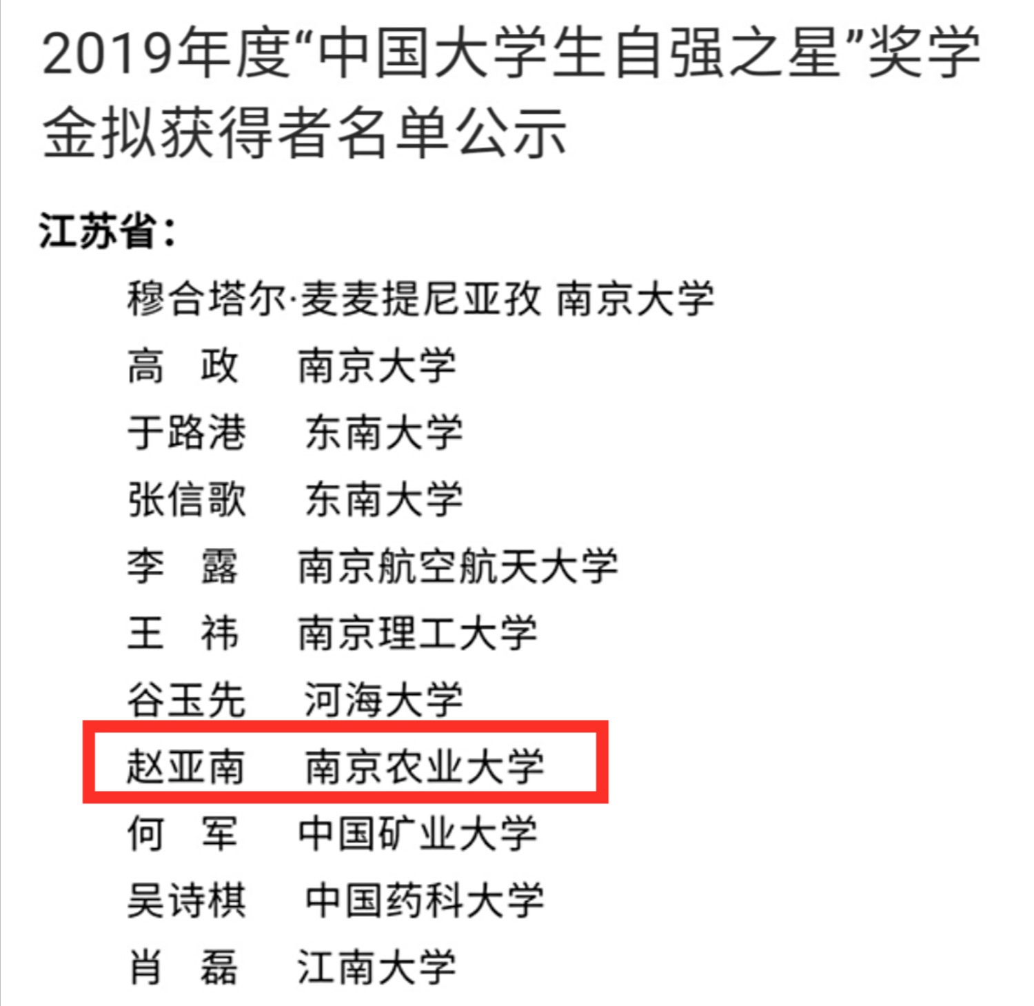 喜报!肉漫屋 赵亚南同学荣获2019年度“中国大学生自强之星”奖学金