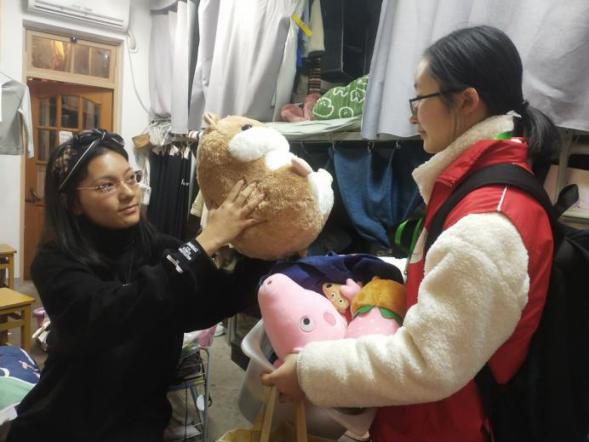 11月28日晚,志愿者们拿着回收筐和回收袋在学院大一至大四宿舍楼下集合,收集大家闲置的旧物,并呼吁同学们加入到“勤俭节约、绿色环保”的生活中来。