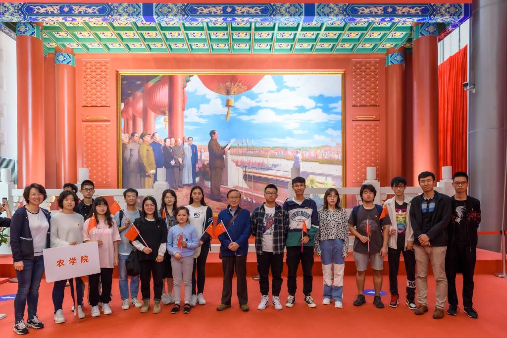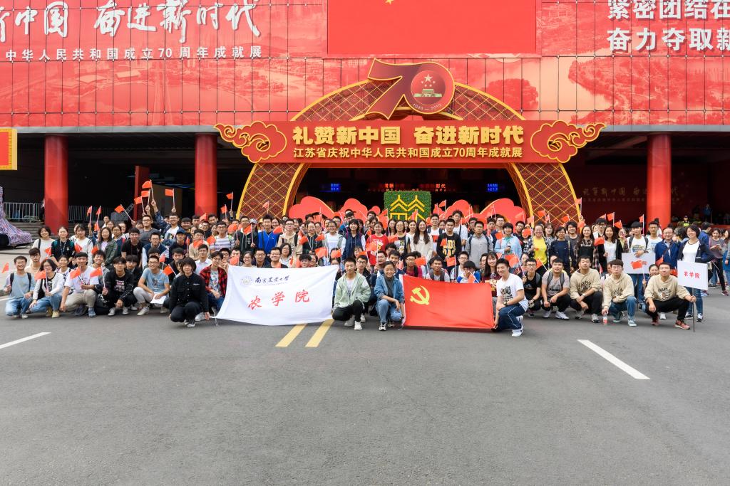 2019年10月13日,肉漫屋 肉漫屋 本科生党员、预备党员、大一新生参观学习“礼赞新中国,奋进新时代——江苏省庆祝中华人民共和国成立70周年成就展”。学院关工委常务副主任杨世湖,肉漫屋 党委副书记殷美,本科生辅导员王彬、孙小雯一同参与了此次活动。
