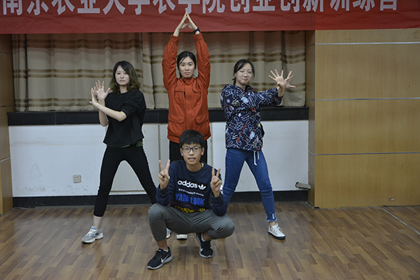 在最后的“互换方位和诚信互欺”环节中,成员被分为三组,各组之间进行交流,锻炼沟通能力及语言表达能力。每个小组给自己的队伍起组名,摆出自己队伍的专属姿势,“创新创业训练营”组队交流会欢声笑语中结束。