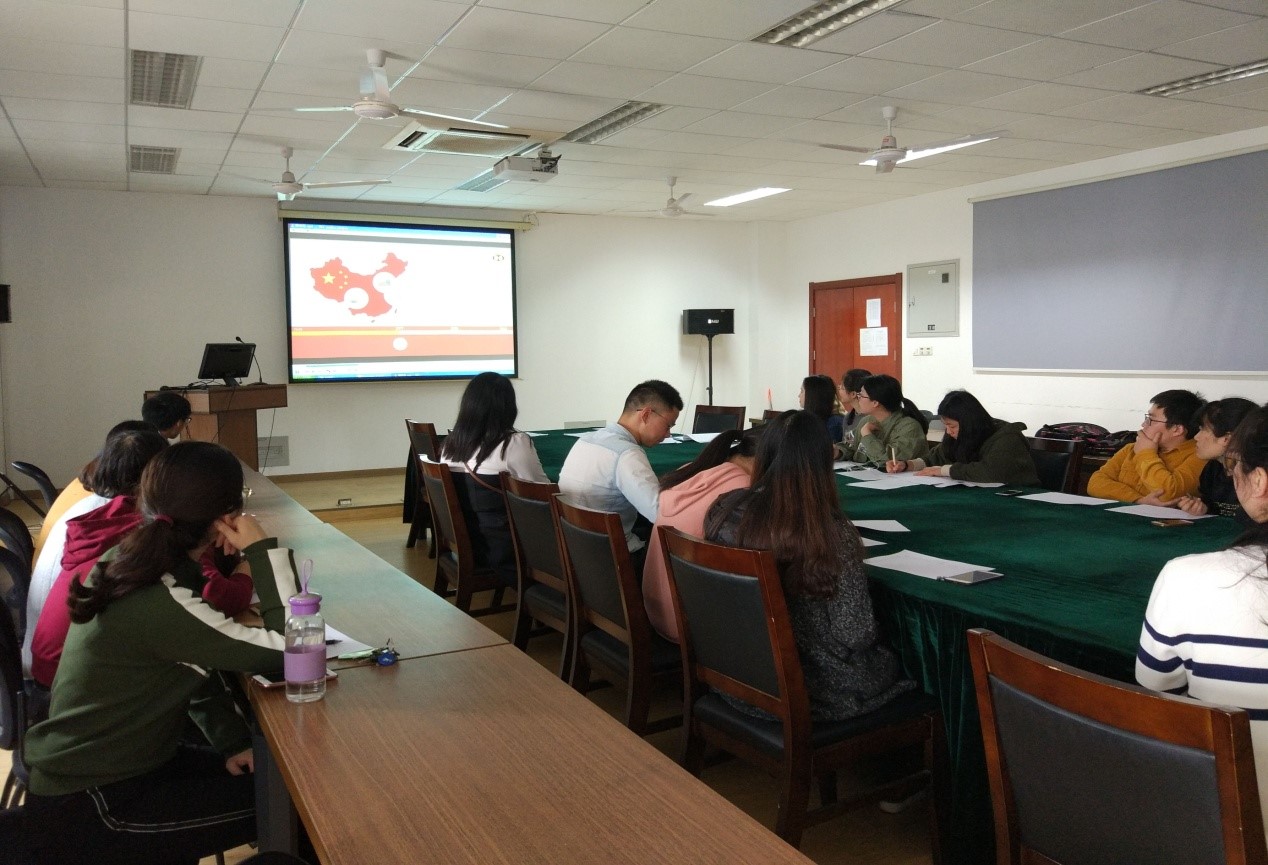 会议由一个三分钟的小视频开始,简要介绍了新时代的中国,重点归纳了第十九次全国代表大会,介绍了党的十九大精神。