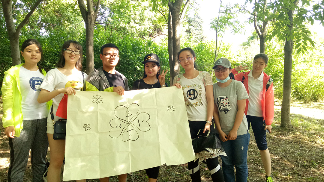 班长团支书随机分成5个小组。素质拓展活动由“快速到达”、“坐地起身”、“心有灵犀”、“多人少足”四个部分组成,其中“快速到达”这一环节中需要完成队旗的设计、全体成员在中山植物园门口展示队旗并拍照打卡、寻找“消失的裁判”。