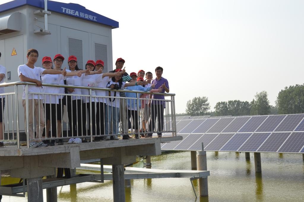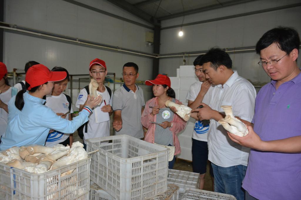 灌南县被誉为“食用菌生产第一县”,11日下午,实践队员来到连云港华泰食用菌有限公司了解杏鲍菇的生产过程。彭玉松总经理带领队员们参观了杏鲍菇生产的整个流程。从培养基质的配比到菌包的灭菌、接种、培养,再到成熟菌菇的采收和加工处理,每一个环节都做到了规范化、标准化和现代化。此次参观过程中,彭总经理和张亮亮老师鼓励队员们:一定要学好理论知识,这样才能在将科研知识转化为实际生产应用时少走弯路。随后,队员们来到灌南生态农业产业区,参观了江苏飞展能源生态园区,胡主任向队员们介绍了渔光互补的光伏发电项目。全区太阳能电池板共占地800亩,目前发电功率达10兆瓦,待项目全部建成后,发电功率将满足国家电量指标,电量将全部并入国家电网。同时,光伏发电与水产养殖相结合,不仅提高了土地利用率,而且增加了园区的经济收入。