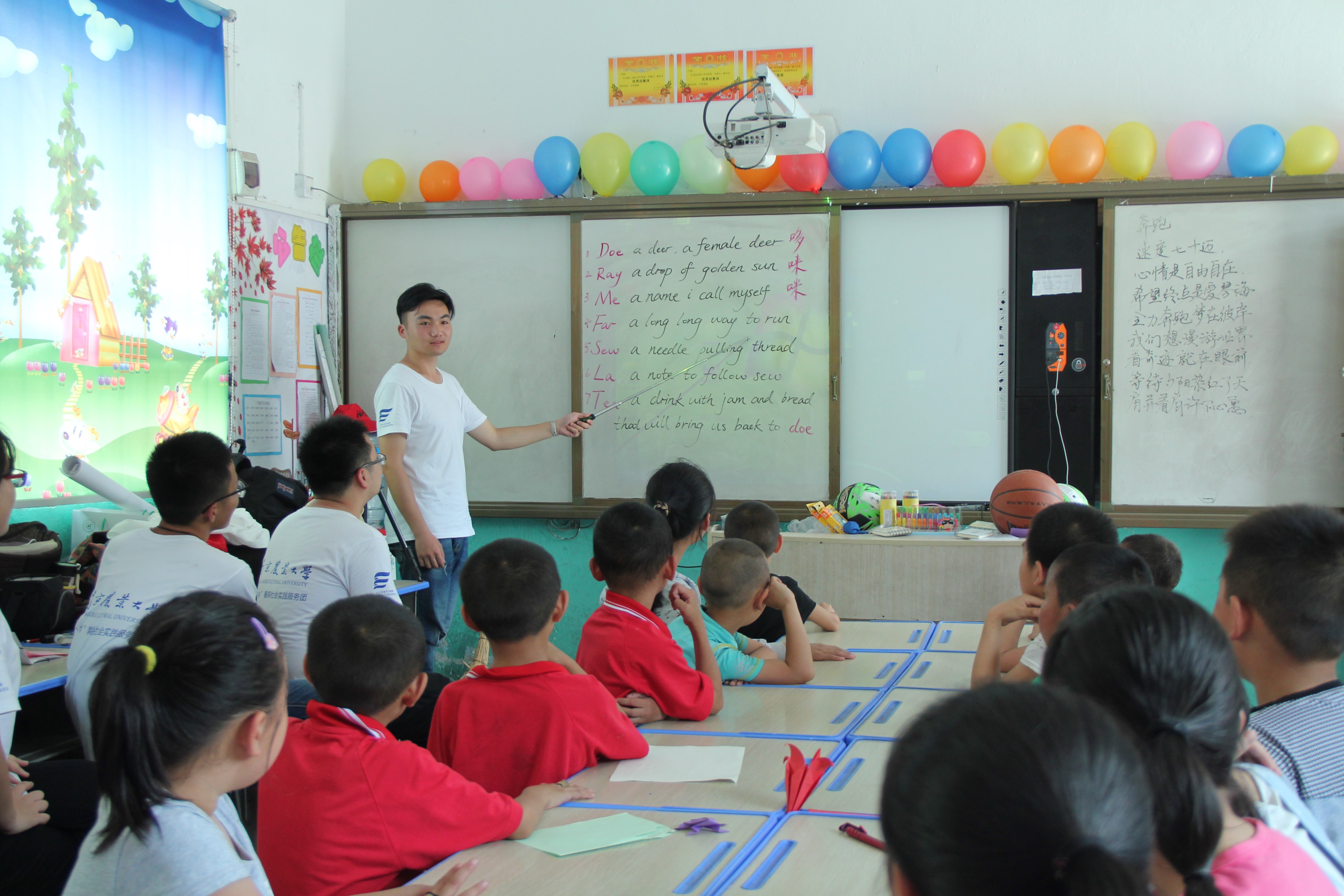 实践队员教孩子们唱英文歌曲《Do Re Mi》