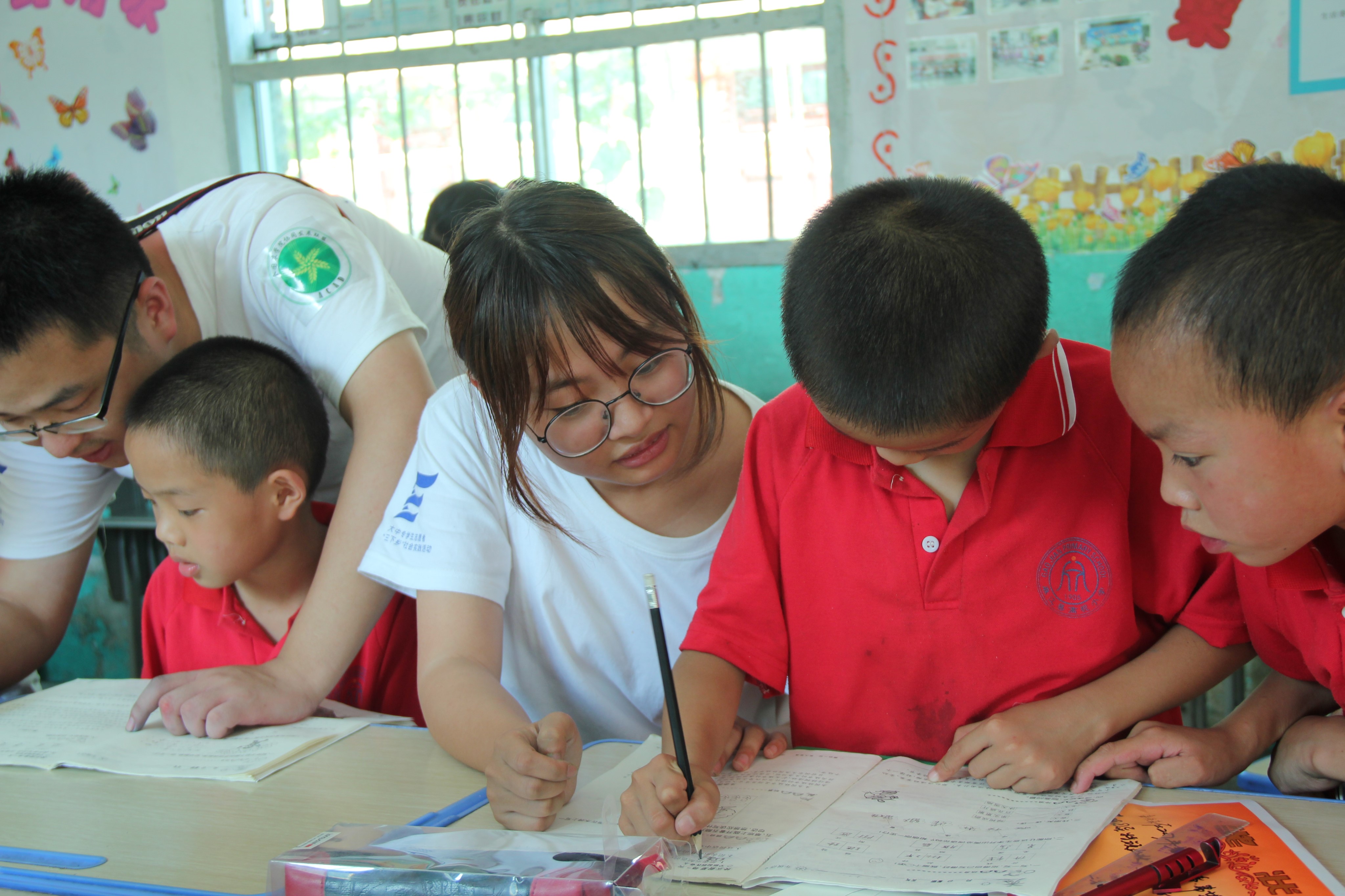 实践团队成员进行暑期作业辅导