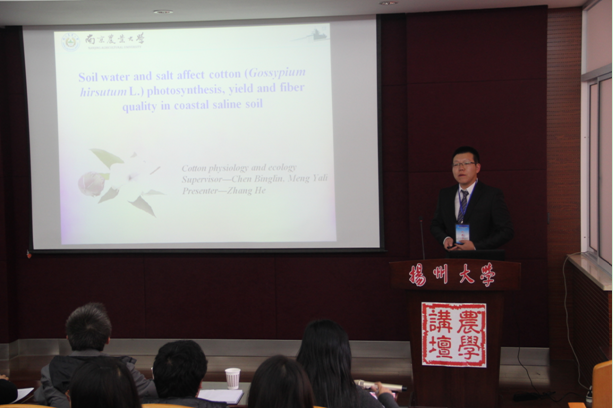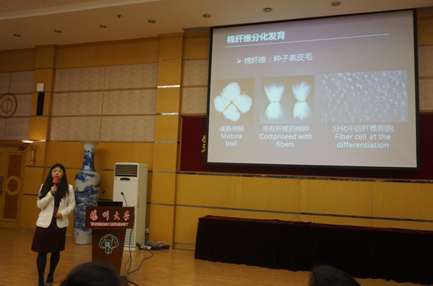 程涛教授和关雪莹教授分别作了题为《基于地面与无人机遥感技术的作物生长监测研究》和《Small RNA pattern and function in fiber cell development》的报告,报告精彩纷呈,反响热烈。