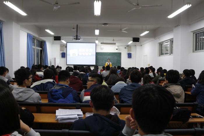 分享会一开始,由姜智胜同学开场,介绍了本次活动的主题,之后大三国奖获得者杨灿,金尚昆,刘鹏涛和刘艺同学依次介绍了自己的学习经验和方法。他们主要通过自己日常的学习习惯,学习侧重点,应试技巧,学习态度等方面介绍了自己的学习经历,将自己取得好成绩的经验毫不保留的分享给大一学弟学妹。讲台下面,新生们也认真地听着,积极学习优秀学长学姐的学习经验。