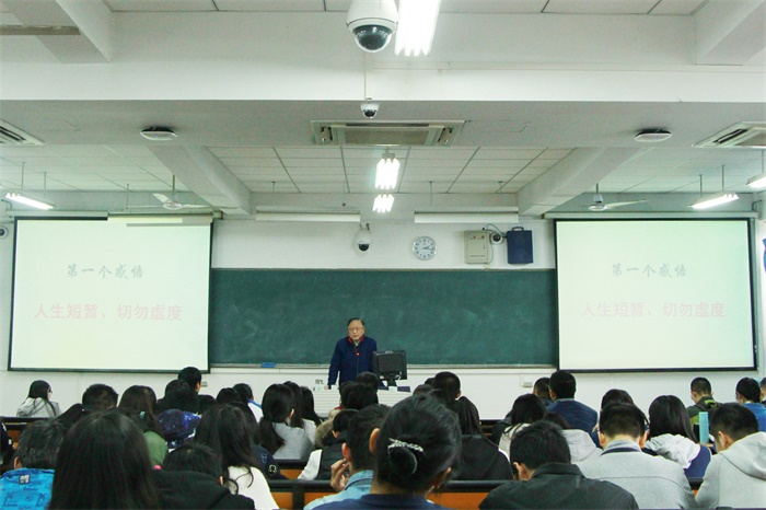 课上杨世湖老师就如何合理利用时间、如何做出正确的选择以及不同阶段同学们要设立的目标等三个方面与同学们展开交流。杨老师指出大学时光是人不断充实提高自己的重要时光,同学们一定要珍惜时光,不要白白浪费了光阴。同时他也强调,人生是一条单行道,没有后悔的机会。同学们切记要做好选择,提高自身。最后,杨老师说人生的不同阶段要合理制定目标,做好每个阶段该做的事,日积月累才能取得成功。