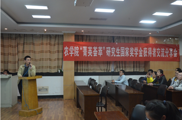 “菁英荟萃”研究生国家奖学金获奖者交流分享会在生科楼E1001举行。此次交流会特邀了4位研究生国家奖学金获奖者胡伟(棉花栽培)、侯富(小麦育种)、朱莹(大豆育种)、徐蒋来(耕作)带来了精彩的分享。