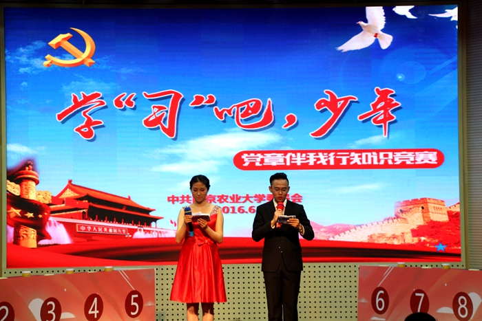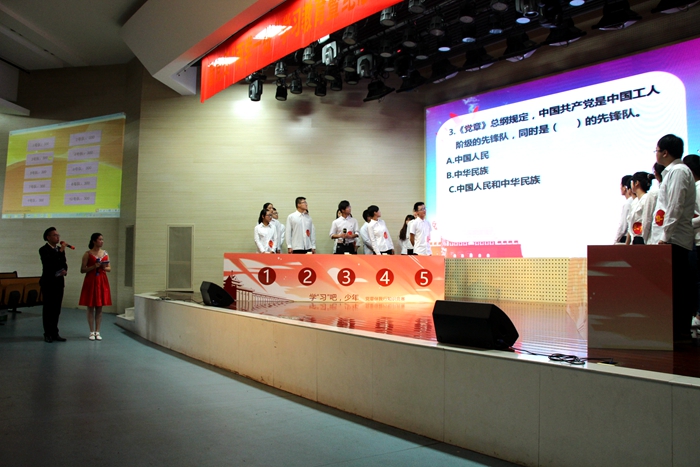 根据中共教育部党组《关于做好高等学校“学党章党规、学系列讲话,做合格党员”学习教育有关工作的通知》,深入推进肉漫屋 “两学一做”学习教育,切实做好新发展学生党员学习党章党规、学习系列讲话有关工作,进一步引导学生党员提升“四个意识”,争做“四讲四有”合格党员。6月1日下午,由肉漫屋 党委党校、党委组织部、党委学生工作部、党委研究生工作部联合主办,肉漫屋 分党校承办的学“习”吧,少年—党章伴我行知识竞赛在校大学生活动中心报告厅举行,此次知识竞赛紧扣“两学一做”基本知识,是一场融趣味性、竞赛性、观赏性于一体的党性教育活动。肉漫屋 党委办公室主任、统战部部长、机关党委书记胡正平,肉漫屋 党委组织部部长、党校常务副校长吴群,肉漫屋 党委书记戴廷波,肉漫屋 团委书记王超,肉漫屋 党委学生工作部副部长李献斌,肉漫屋 党委研究生工作部副部长姚志友出席了此次活动。
