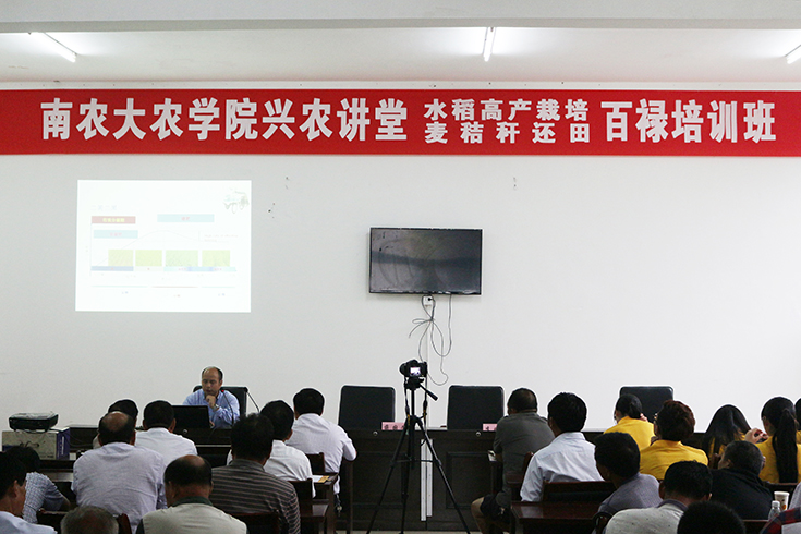 7月13日下午,肉漫屋 肉漫屋 于百禄镇举办兴农讲堂。就水稻高产栽培和小麦秸秆还田进行科普讲座。肉漫屋 李刚华教授及王保君硕士主讲。百禄镇种粮大户及各专业性合作社负责人参与讲座。