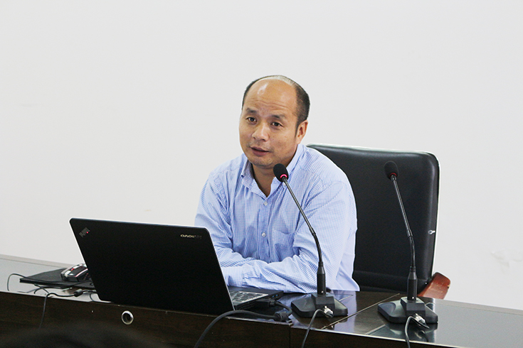李刚华教授对比其他国家的耕地情况和耕作方式,分析灌南地区水稻机插和直播的优缺点,强调机插优势的同时也指出其在种植效益和育秧质量上的缺陷,同时介绍了水稻生育阶段与产量形成的关键时期,提出了一些增产措施。讲演后,李刚华与当地种粮大户就水稻种植经验等进行分享和交流。