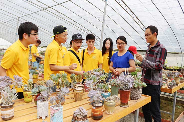 下午同学们参观了大学生村官刘大鹏自主创业的植物园。园区内有包括多肉植物园和家庭农场等区域。刘书记着重介绍了多肉植物园,强调了其在带动村内就业,为当地农民增加收入等方面的积极作用。