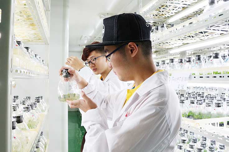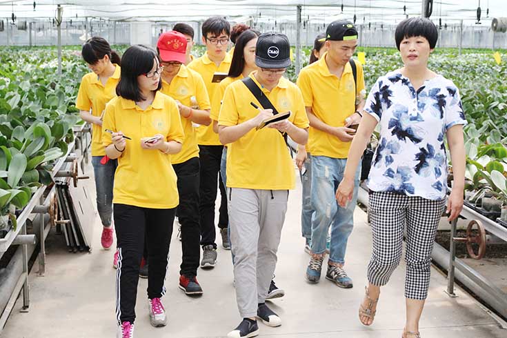 上午,同学们参观了振兴花卉基地。在副经理郑金生的介绍下,对蝴蝶兰的组培到成花的生长过程进行了解,同时他也介绍了振兴集团产业化、规模化的生产线,及成花的对外输出销售等。他表示会顺应时代发展,紧跟“十三五”的发展需求,拓宽思路,结合电商等时下比较热门的技术,进一步拓宽销路。之后,同学们在周振玲老师带领下,参观了连云港市农科院的试验基地。基地从事小麦、水稻、蔬菜、果林等多样的品种选育工作。基地面积近四百亩,具备品种评价和检测功能。周老师指出连云港市农科院积极选育新品种,造福民生,同时也在寻求解决面源污染的方法,发展绿色农业,高效农业,为实现中国梦做出自己的贡献。