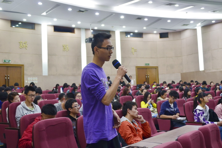 程涛教授从自己的专业背景讲起,跟同学们分享了自己为什么出国,出国前的准备,出国后博士以及博士后阶段的学习,包括博士论文的选题、答辩、报告总结等等,说到在美国进行科研工作的经历时,强调了语言和英文写作的学习,从各个不同的方面详尽地讲述了自己的北美求学生涯。最后,程涛教授用简单易懂的语言介绍了自己的研究方向,欢迎本科生去实验室做SRT和毕业设计。