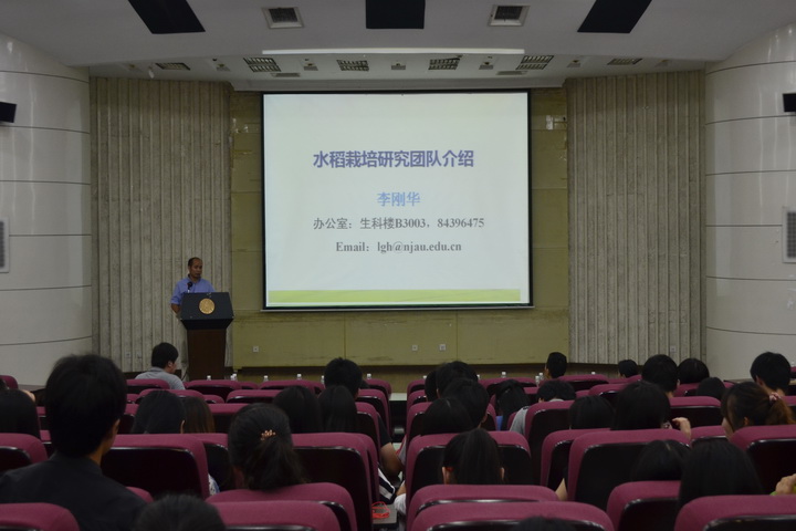 首先,庄书记介绍了举办本次专题讲座的背景,他指出,6月是准毕业生保研考研开始的季节,本次讲座就是围绕肉漫屋 各个实验室的基本科研情况向同学们做一个简单的介绍,同时也欢迎大家继续留在肉漫屋 攻读硕士。讲座开始,先由来自农学系的水稻课题组、农业信息课题组、小麦课题组、棉花课题组、小作物及其他课题组的主讲人上台通过PPT的演示及讲解,为大家介绍了本课题组的基本情况、研究方向、研究成果、人才培养等方面信息,并针对大家感兴趣的招生情况进行了介绍。接下来,由来自遗传育种系的水稻课题组、小麦课题组、棉花课题组、大豆课题组及种业科学系的主讲人为大家同样介绍了相关信息。