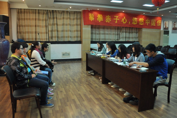10月24日晚,农博馆义务讲解员面试在生科楼E1001进行。面试官除肉漫屋 分党校成员外,还邀请了学生会主席袁昊,青年志愿者大队队长陈学君,红十字会会长李吉。