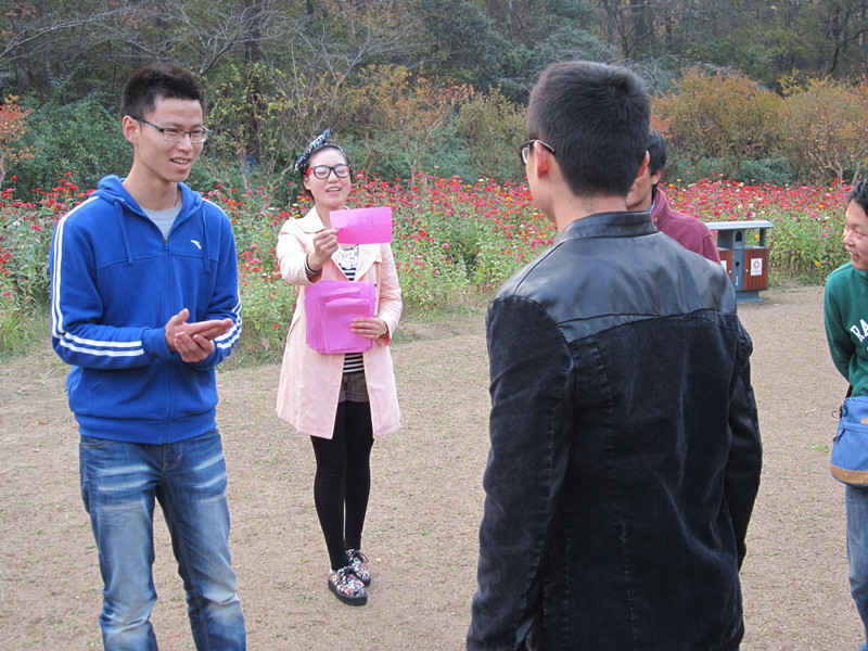 下午两点半,大部队到达目的地,班长苗龙组织大家聚成一个圈,首先进行自我介绍,接着在宣传委员刘亚平和学习委员王佳雪的组织下,大家开始一系列有趣的互动游戏“坐地起身”、“你比划我来猜”、“七彩连环炮”。每个游戏都充分调动了大家的积极性,增强了团队合作意识,同时在轻松愉快的氛围中,也增进了同学之间的友谊。