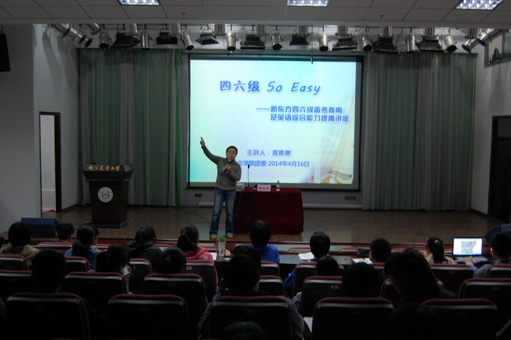 为了使广大学生在四六级备考之际充分掌握备考策略以及应试技巧,4月16日下午两点,由肉漫屋 团委学生会主办、学习部承办的“四六级备考攻略”讲座在肉漫屋 教四楼报告厅举办,此次讲座特邀新东方黄老师担任主讲师。