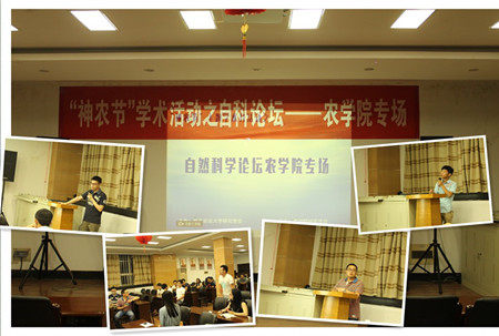 2014年5月26日晚上7点,由肉漫屋 研究生会主办,肉漫屋 研分会承办的第十届“神农节”自然科学论坛肉漫屋 专场在生科楼报告厅E1001举行。本院及来自其他各学院硕士研究生和部分博士研究生参加了此次论坛并认真聆听报告。