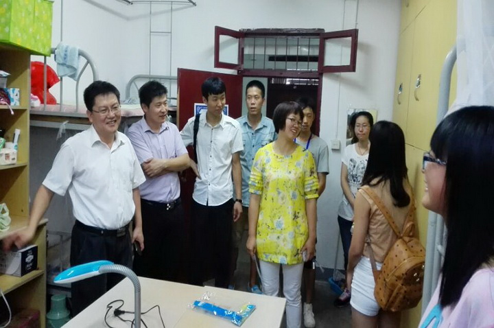 领导们首先来到5舍女生宿舍,宿舍里家长跟同学们正在收拾生活用品,孩子们的脸上洋溢着兴奋与喜悦。戴书记亲切地和大家拉起家常,问到了同学们的家乡,也十分关心他们此次出行情况,一番简单交流后,同学们也慢慢放下了初来乍到的青涩。在被问及初到大学的感受时,大家的话语间流露出激动的神情,也对四年的大学生活充满了憧憬。家长们对南农的印象颇好,赞叹南农校园风景优美,拥有浓厚的文化底蕴和人文气息,气氛相当活跃。家长们最为牵挂的是孩子们无法尽快适应大学的学习生活环境,在得知学校和学院会组织一系列的新生入学教育活动帮助同学融入大学生活时,家长们很快打消了这种顾虑,纷纷表示让孩子在南农来上学很放心。交流期间家长与同学们还谈到了有关金善宝实验班以及专业就业前景的问题,领导们都一一做了详细的解答。在结束对女生宿舍的走访后,领导们又前往男生宿舍20舍进行走访探望。