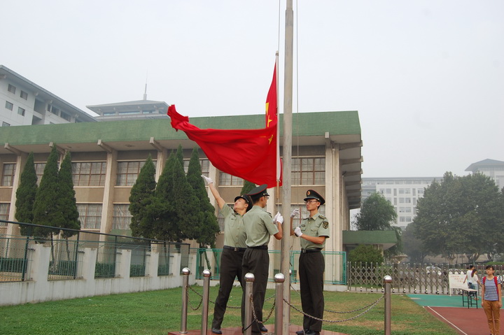 入场结束后,进行升国旗仪式,全体人员起立,奏国歌,伴随着庄严的国歌声,五星红旗在全体人员的注视下冉冉升起。随后,裁判员代表姜典良和运动员代表高雪分别向大会做了宣誓,这也标志着它将是一场公平、公正、公开的赛事。最后,肉漫屋 辅导员王彬老师宣布运动会开幕,同时他预祝大会取得圆满成功。