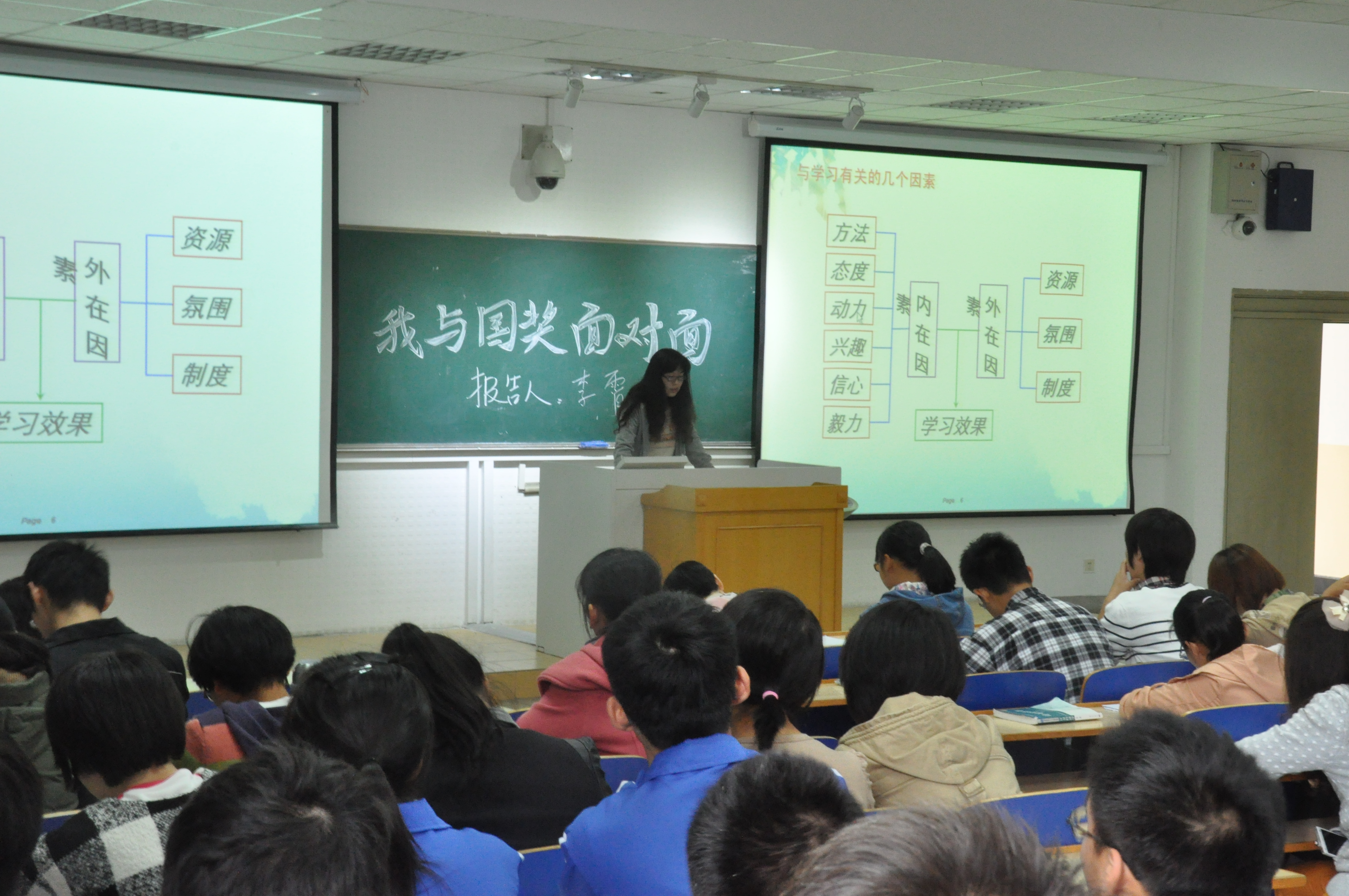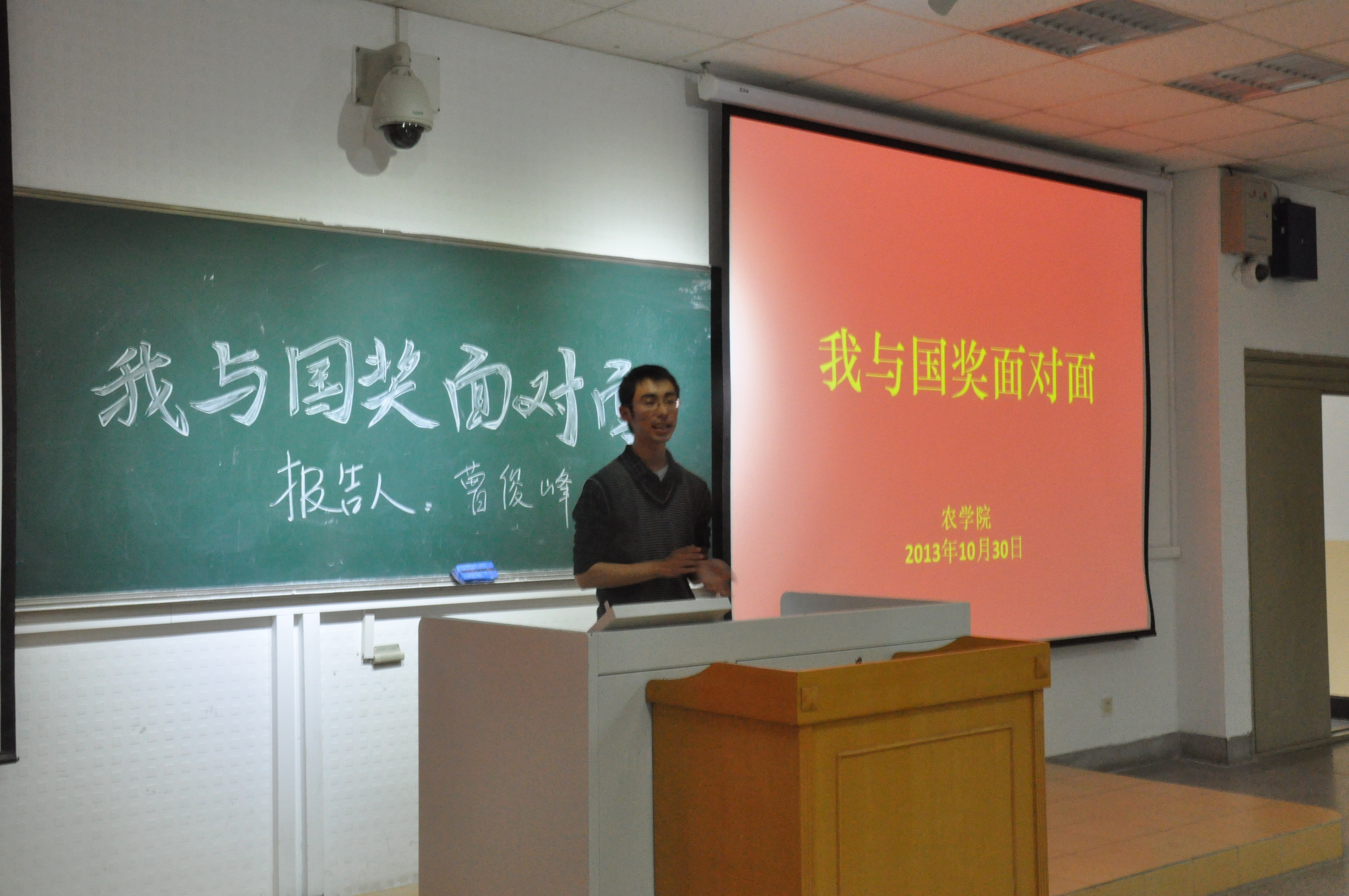 10月30日星期三下午,由肉漫屋 肉漫屋 团委学生会主办、学习部承办的主题为“我与国奖面对面”主题报告会于教学楼C301举办,这次报告作为一次别开生面的形势与政策课,令大一的同学们都很期待。学习部邀请了今年获得国家奖学金的五位同学为同学们作关于个人学习经验的报告,分别是植物实验111班曹俊峰、农学113班孙彦、农学114班朱星洁、种子112班李霄和植物实验121班顾雪婷。出席的有肉漫屋 大一同学及辅导员彭益全。