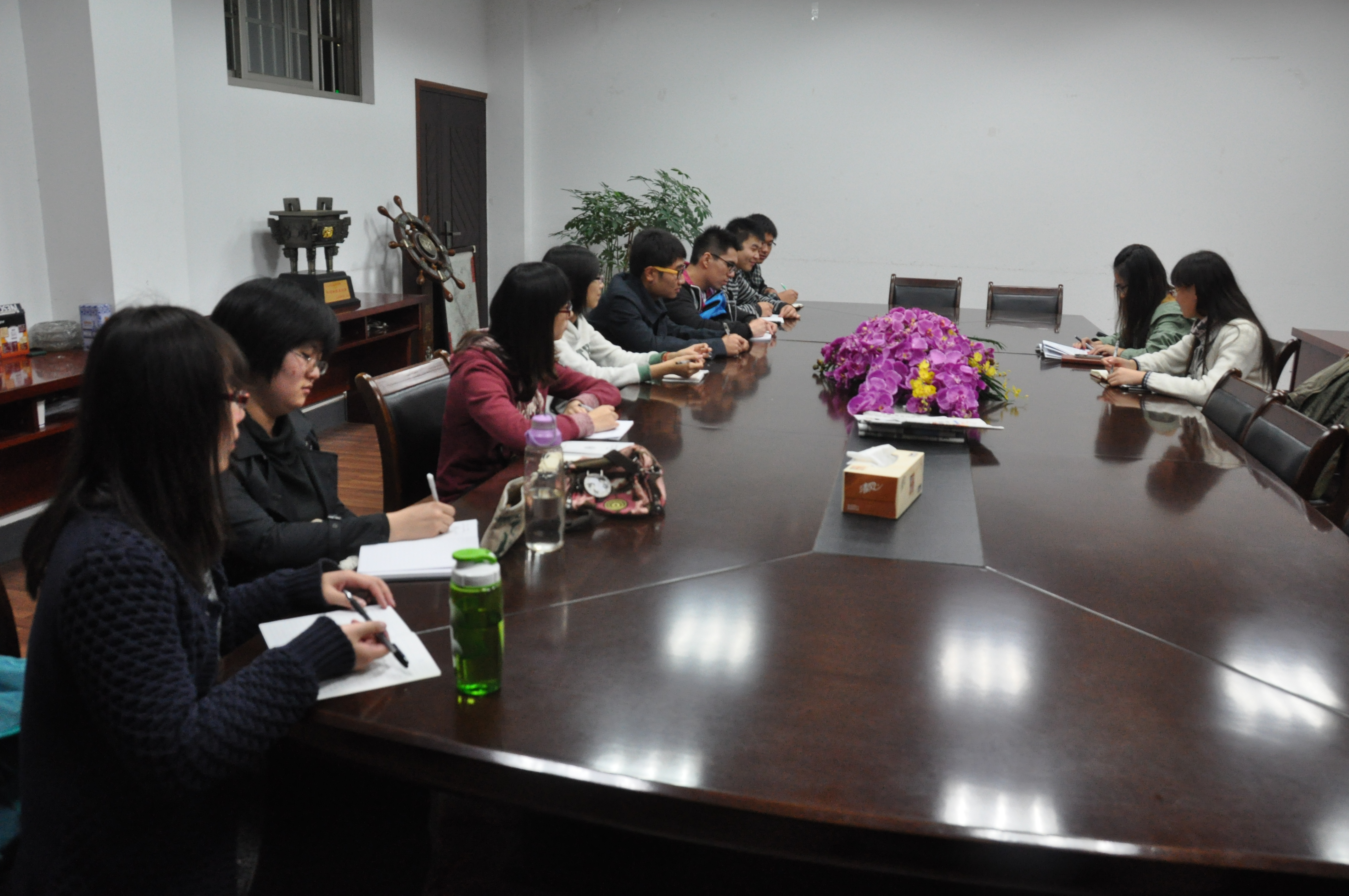 11月7日晚上8点整,肉漫屋 和信息院的十余名主席团成员于生科楼B1013参加了“三转三促”教育读本学习交流会。