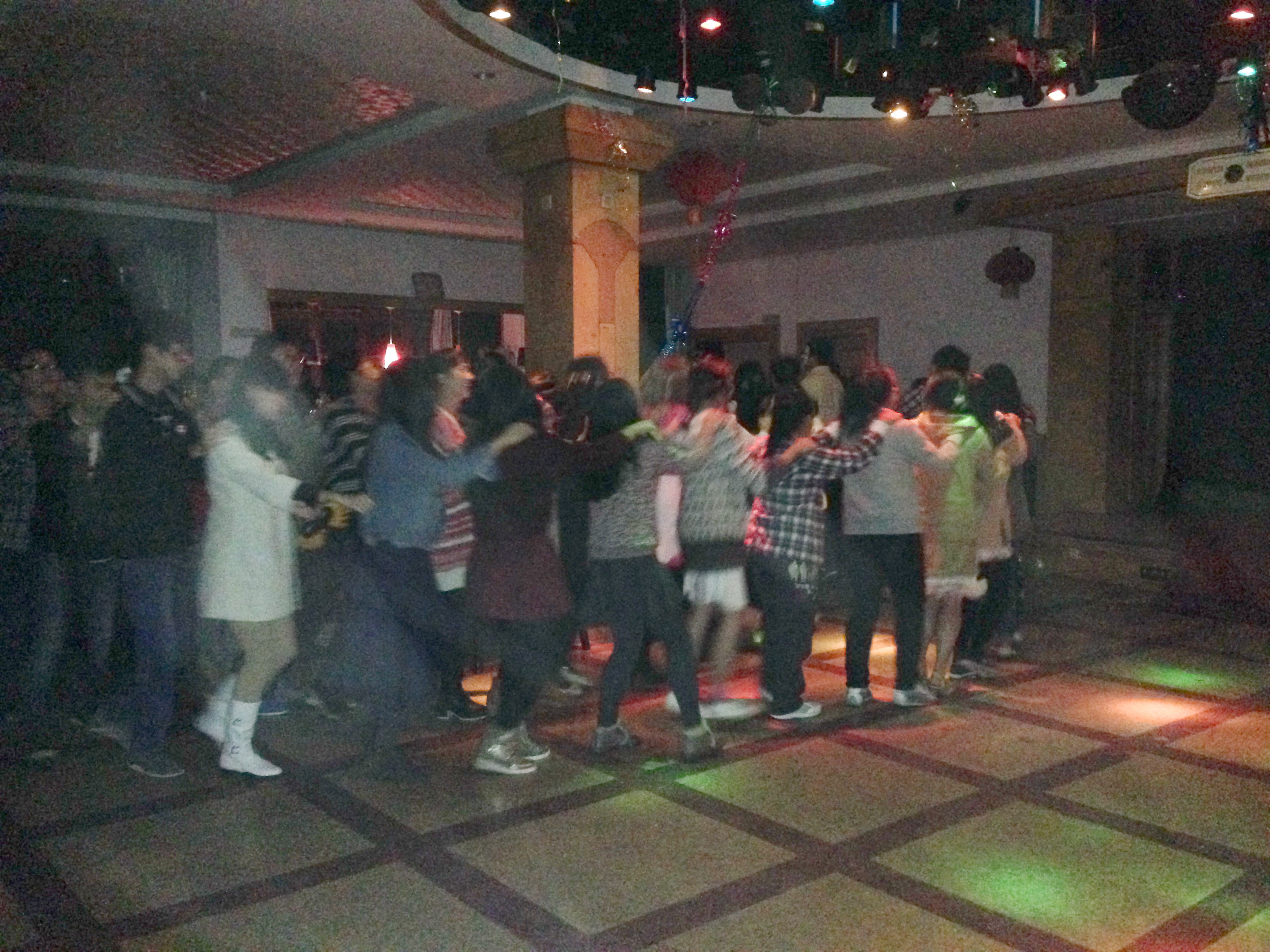 开场兔子舞由艺术团舞蹈团领舞两分钟,接着带动舞会现场所有人一起加入到舞蹈行列,大家彼此搭肩,整齐的合着节拍跳动,气氛热烈。接下来的速配环节,入场拿到号码牌的男女生找到与自己号码相同的搭档,两搭档一齐亮相,以不同的方式走上红地毯,大家用不同的方式创意的走上舞台,或嬉笑搞怪,或温馨柔美,大家其乐融融。