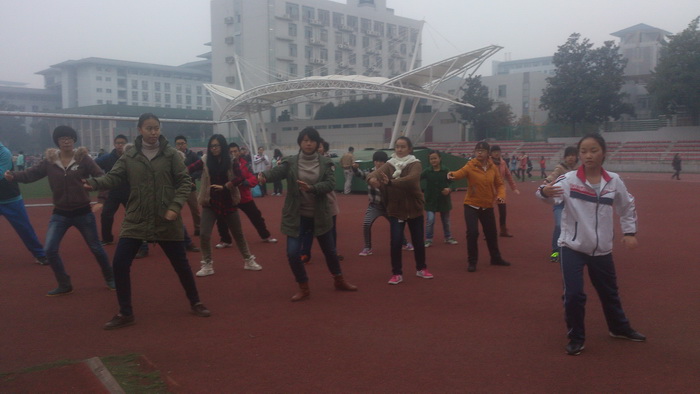 近日,肉漫屋 太极兴趣小组召集10名肉漫屋 太极队成员在早操结束后以班级为单位帮助大一年级的同学们练习太极,进行体育考试前的突击辅导。同时诸位太极队成员也为下学期的太极比赛做准备,提前挑选合适的新任太极队队员人选,争取在第42届体育大会中取得太极比赛的优胜!