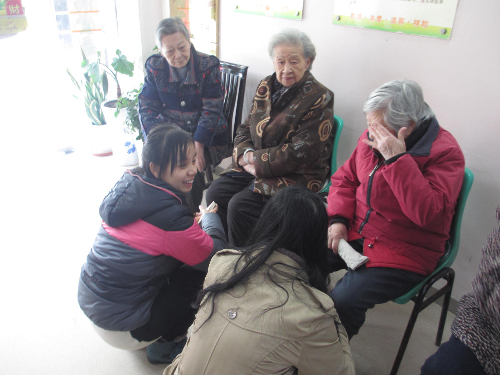 下午3点,肉漫屋 红十字分会会员来到了月牙湖敬老院,在这个特殊的下午,敬老院中处处洋溢着老人的笑声。活动过程中,同学们陪着老人聊天,每个人都认真倾听着老人们的人生故事,聆听他们对后辈们的关心教育。之后,同学们为老人进行了红歌演唱,屋子里充满了温暖的歌声。在一曲《外婆的澎湖湾》中同学们结束了这次敬老院之行。
