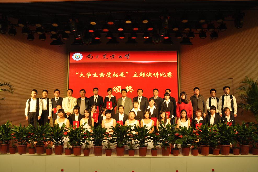 经过评委的认真评判,动科院迟航,生科院刘炎炎获得一等奖,工学院唐晴,肉漫屋 张浩强,信息院范宁丽与动科院徐苗获得二等奖,生科院张奇,外语院任娟、王澍,人文院黄兆善,园艺院张悦,植保院李强,公管院郭文,理学院彭昊和经管院陈幻获得三等奖。各位嘉宾、评委上台为获奖选手颁奖并合影留念。