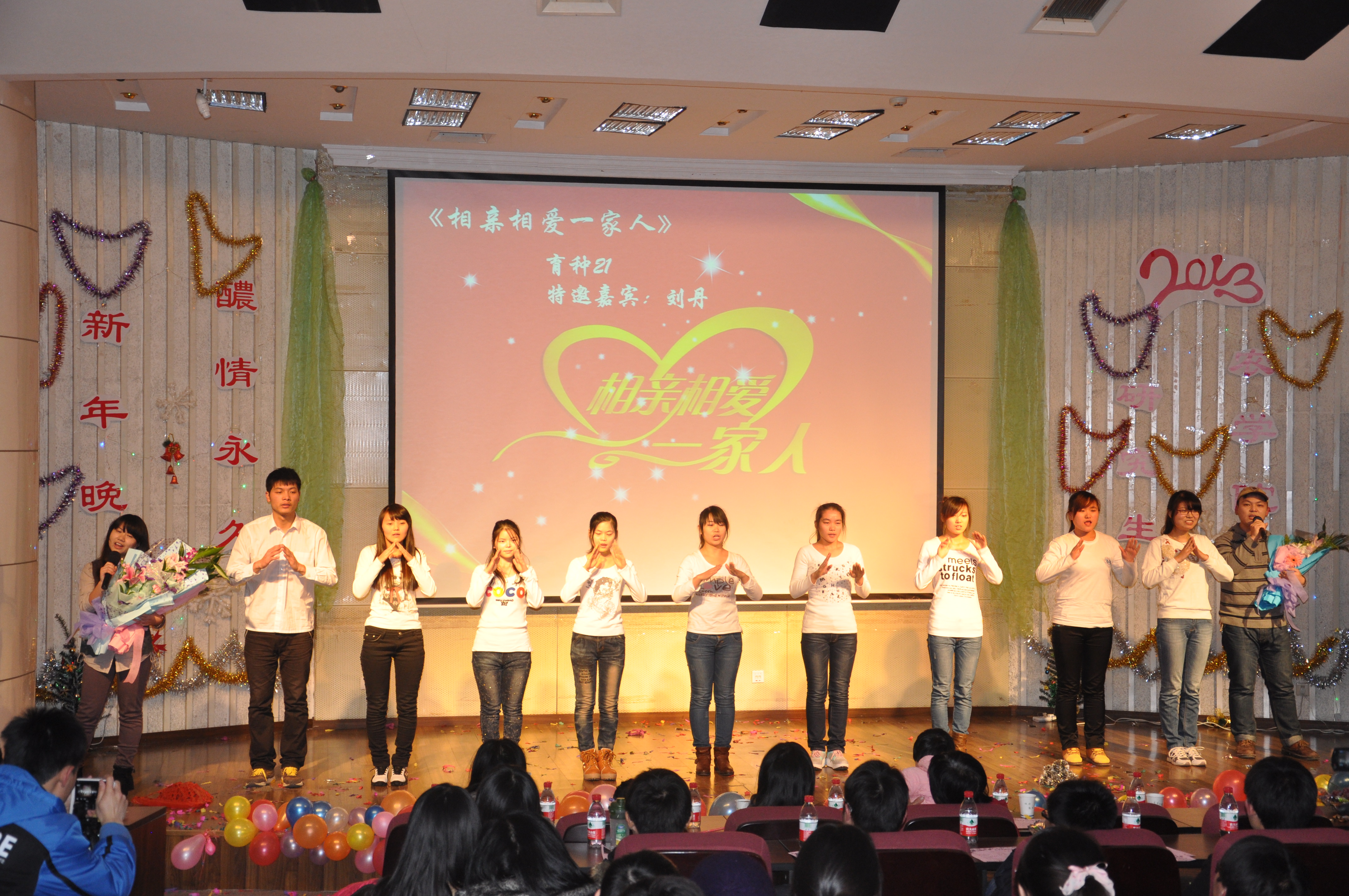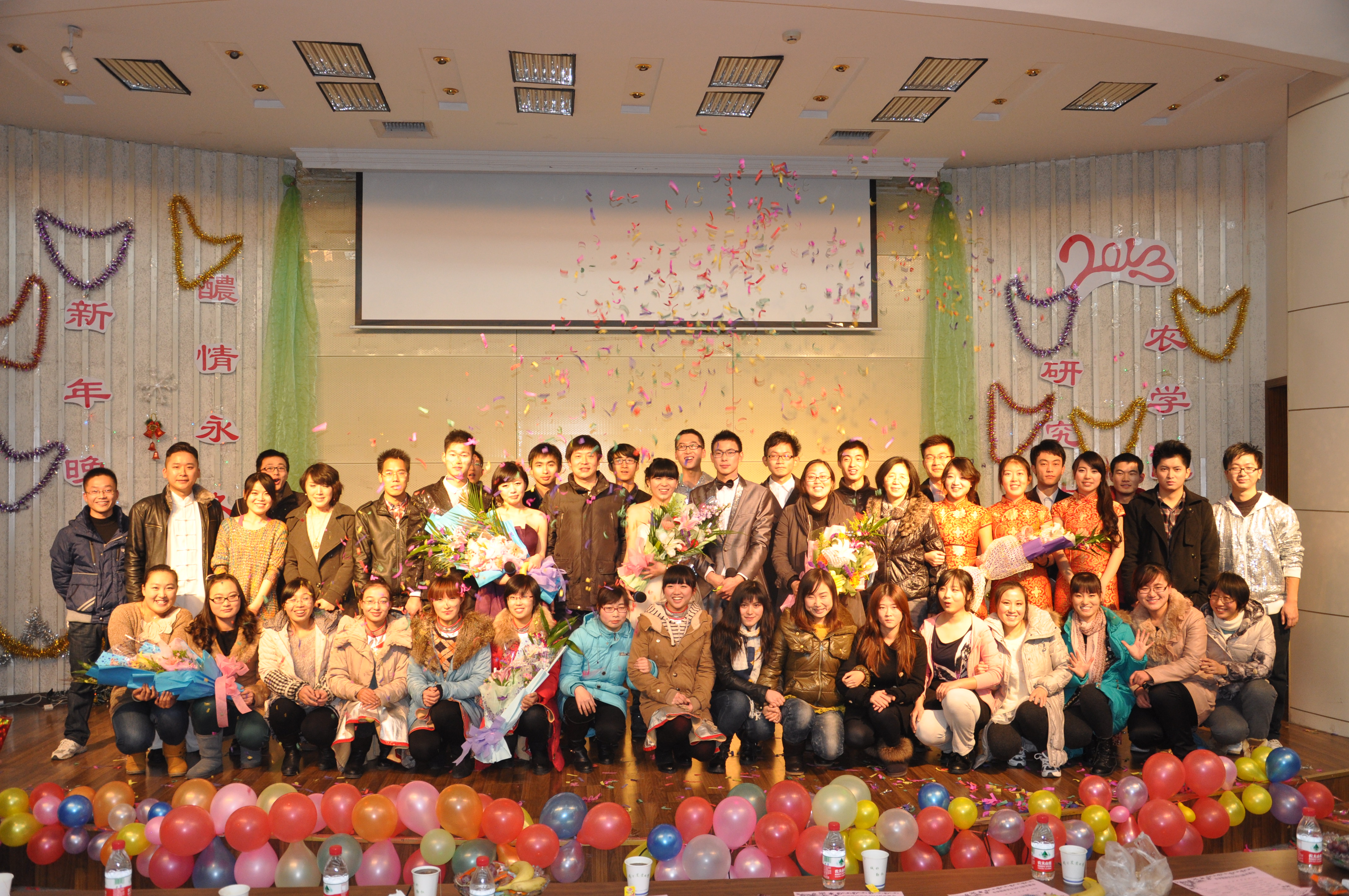 副院长戴廷波、院党委副书记庄森、院遗传育种系贾海燕、研究生教务秘书李雪芹、研究生辅导员郭晓鹏、党务秘书马丽琴与全院研究生一起观看了晚会。本次晚会由肉漫屋