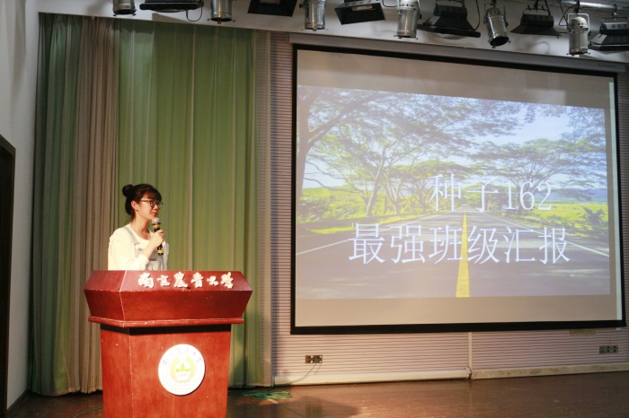 同学们从班级机制建设、学风建设及班级特色文化建设等方面出发,对班级的工作开展情况及取得的成果进行汇报。3到5分钟的时间里,各班级通过PPT展示、视频宣传及班级节目等丰富的表现方式向同学们展示了班级文化及特色。