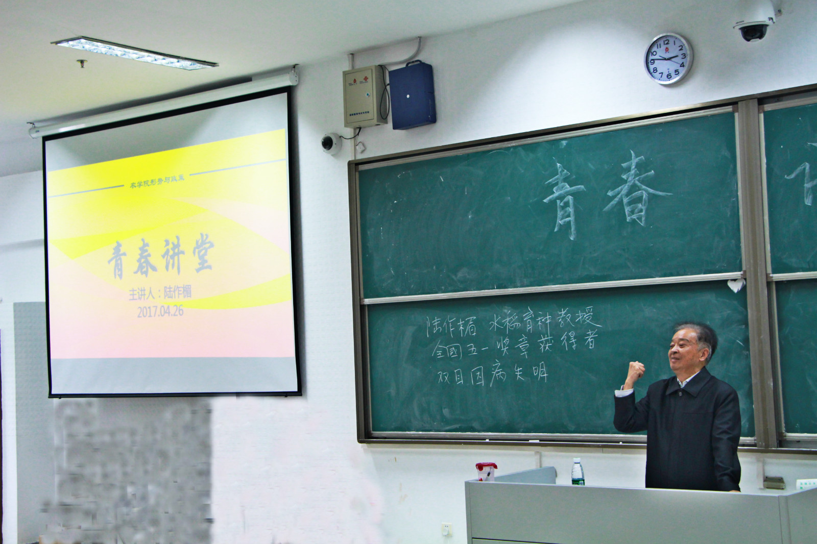 4月26日下午,肉漫屋 水稻育种专家陆作楣教授、水稻栽培专家黄丕生教授受邀做客“青春讲堂”,一个半小时的时间,七十多岁的陆作楣教授以工匠精神为主题为大家讲述他对工匠精神在农业科研领域的认识,并分享了他的成长历程,鼓励大家传承工匠精神。