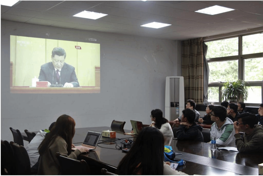 2019年4月30日上午10:30,纪念五四运动100周年大会准时召开。肉漫屋 组织肉漫屋 团委学生会及肉漫屋 研究生会部分学生代表在生科楼B1013会议室集体观看直播,学习会议精神。