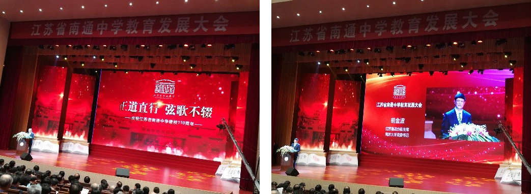 发展大会以“正道直行 弦歌不辍”为主题,在嘹亮的国歌声中拉开了序幕。大会分为发展大会及庆典演出两部分,分别邀请南通中学杰出校友、离退休老教师代表及在校师生共同呈现精彩节目,献礼南通中学110周年华诞。南通中学向学校老教师颁发百十校庆纪念奖杯,并在合唱《通中》节目中顺便闭幕。
